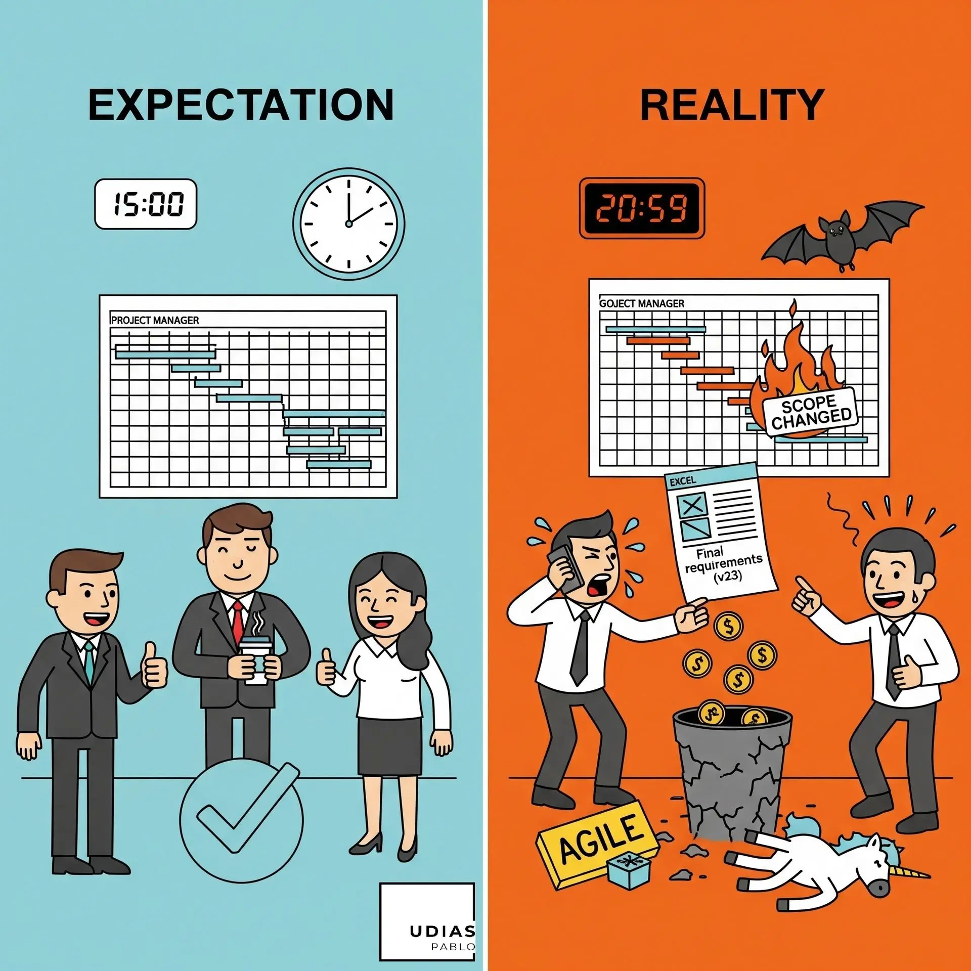 En el papel, todo proyecto parece avanzar según el plan: cronogramas claros, tareas bien distribuidas y equipos motivados. Pero en la práctica… el panorama es muy distinto. La diferencia entre lo que se espera y lo que realmente sucede en la gestión de proyectos es por lo que se valora el trabajo del Project Manager.